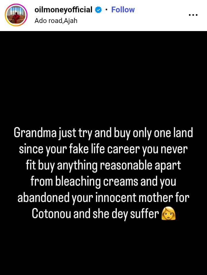 Oil Money did not stop there. In another public statement, he challenged Angela to prove him wrong by purchasing land rather than displaying what he described as a “fake big girl” persona online. His statement read: