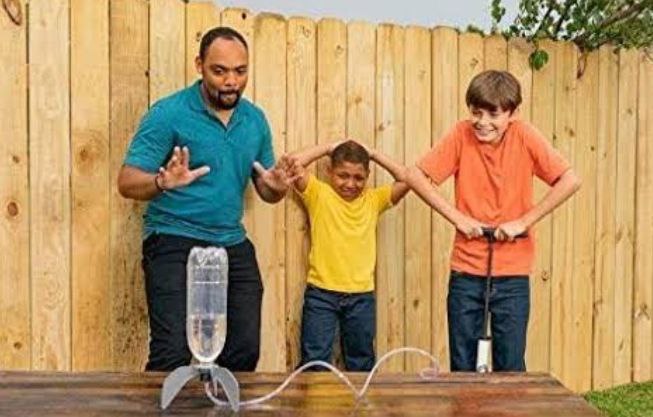 This kit allows kids to construct their own rocket using a plastic bottle along with fins, connectors, and other essential components. Once assembled, the rocket can launch more than 30 feet into the air using water pressure.