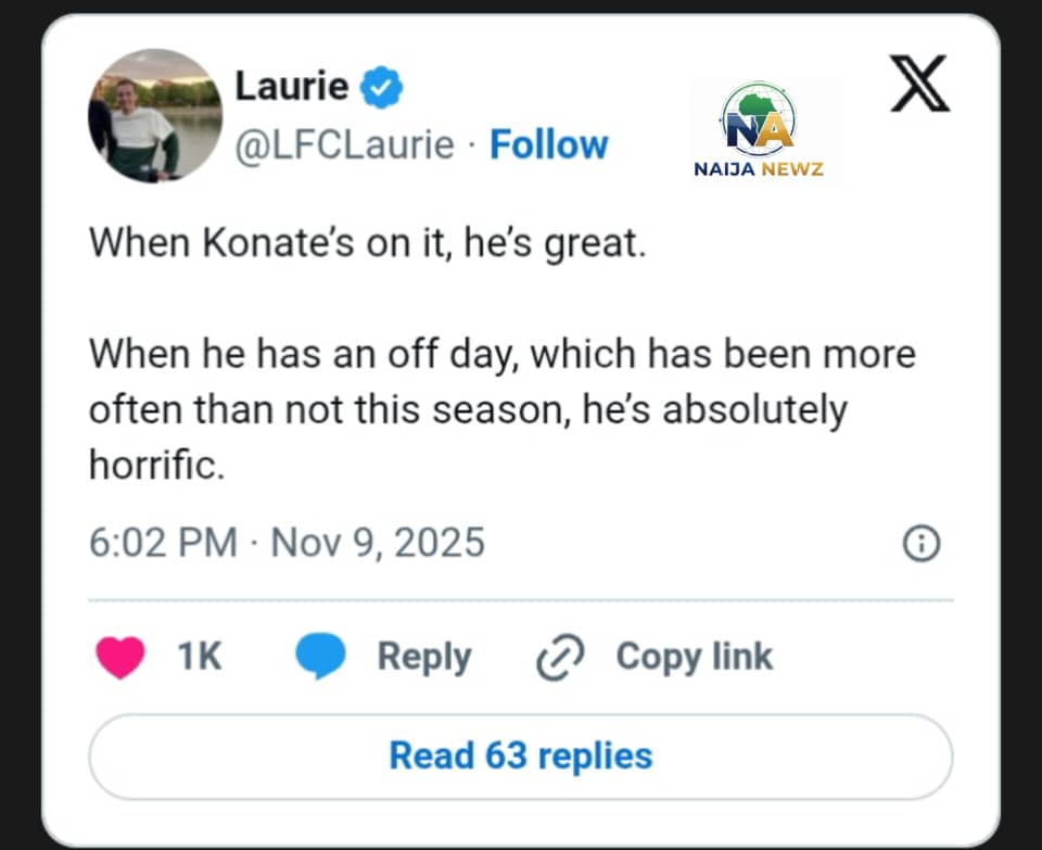 For many fans, the phrase Liverpool player labelled a ‘liability’ perfectly captures their growing disappointment with Konate’s recent performances. Some even suggested that Liverpool should replace him with Crystal Palace defender Marc Guehi, who has been on the club’s radar for months. “Konate needs to leave,” one fan insisted. “We must bring in Guehi this January.”