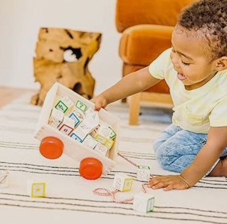 These wooden blocks, crafted in the USA, introduce your baby to letters, numbers, and basic words in a tactile, hands-on way. Unlike digital learning tools, these blocks encourage real interaction. Your child can stack them, knock them over, and explore them freely.
